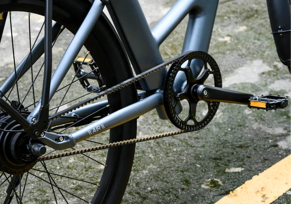 ADO A28 Air được trang bị hệ thống truyền động dây đai carbon thay cho xích truyền thống, mang lại trải nghiệm vận hành êm ái, nhẹ nhàng và bền bỉ. Dây đai này không cần dầu nhớt, không gây tiếng ồn và có tuổi thọ lên đến 30.000 km, giúp người dùng yên tâm sử dụng mà gần như không cần bảo dưỡng.