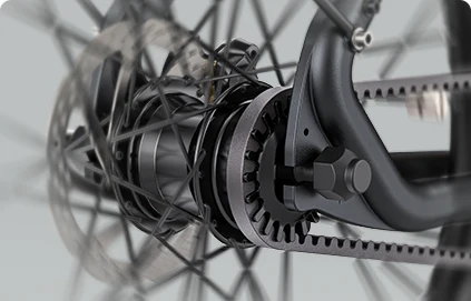 Một trong những cải tiến đáng kể của Engwe P275 Pro là ổ đĩa carbon của Gates, mang lại trải nghiệm lái xe yên tĩnh và êm ái. Hệ thống truyền động này loại bỏ hoàn toàn tiếng ồn và sự cồng kềnh của xích truyền thống, giúp người lái tận hưởng một chuyến đi trọn vẹn và thú vị hơn bao giờ hết.