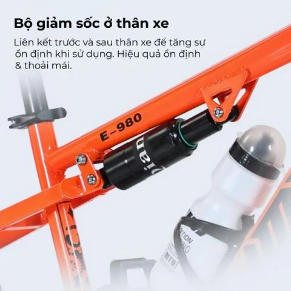 Phuộc nhún đôi và phuộc giữa giúp xe di chuyển ổn định và thoải mái trên mọi loại địa hình, đảm bảo trải nghiệm lái xe êm ái.