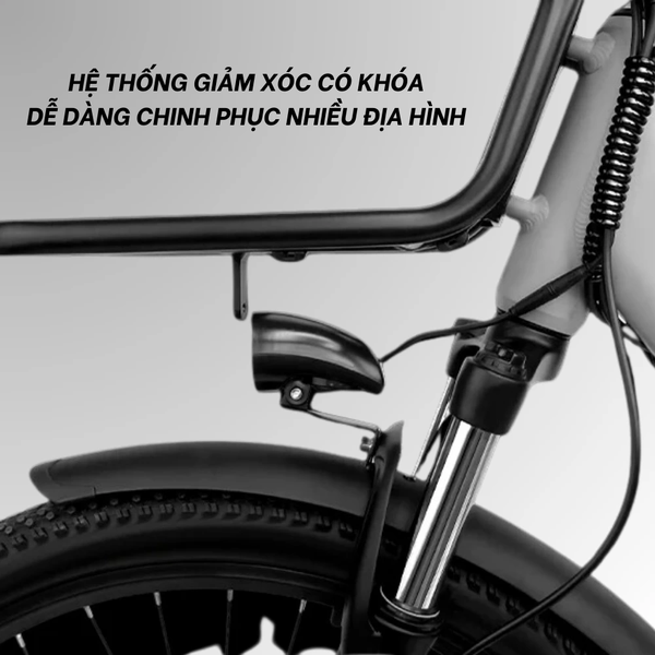 PVY P26 được trang bị hệ thống giảm xóc trước có khóa, giúp xe hấp thụ xóc tốt trên mọi địa hình, mang lại sự thoải mái cho người lái. Bộ giảm xóc sau 30mm cũng tăng cường khả năng chịu xóc, giúp hành trình di chuyển mượt mà hơn, đặc biệt trên những cung đường gồ ghề.